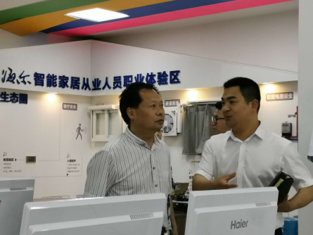 考察团一行参观了海尔COSMOPlat智能学院、产教融合实训基地,了解项目投资、基地运作管理和实际使用等情况。在随后的座谈会上,海尔校企合作单位南京机电职业技术学院副院长刁爱军代表学校对韩洪涛一行表示热烈欢迎,介绍了南京机电职业技术学院在海尔智能化学院建设、创新创业、校企合作、校园文化建设等方面的情况。随后双方就关注的问题进行了充分的交流和深入的探讨,就今后进一步加强两院的合作交流、取长补短、共谋发展达成共识。