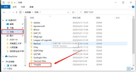 3、打开此电脑找到文档文件夹删除掉tongda