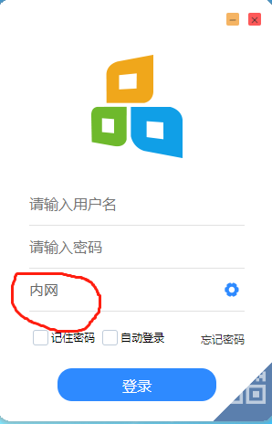 3、在登录界面输入用户名密码,注意红圈处地址为上一步设置的内网地址。