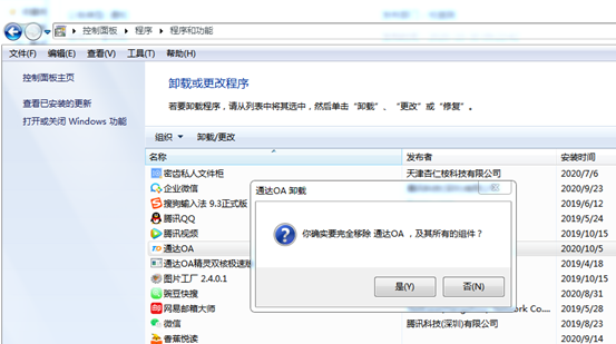 1、首先找到控制面板中卸载掉通达OA