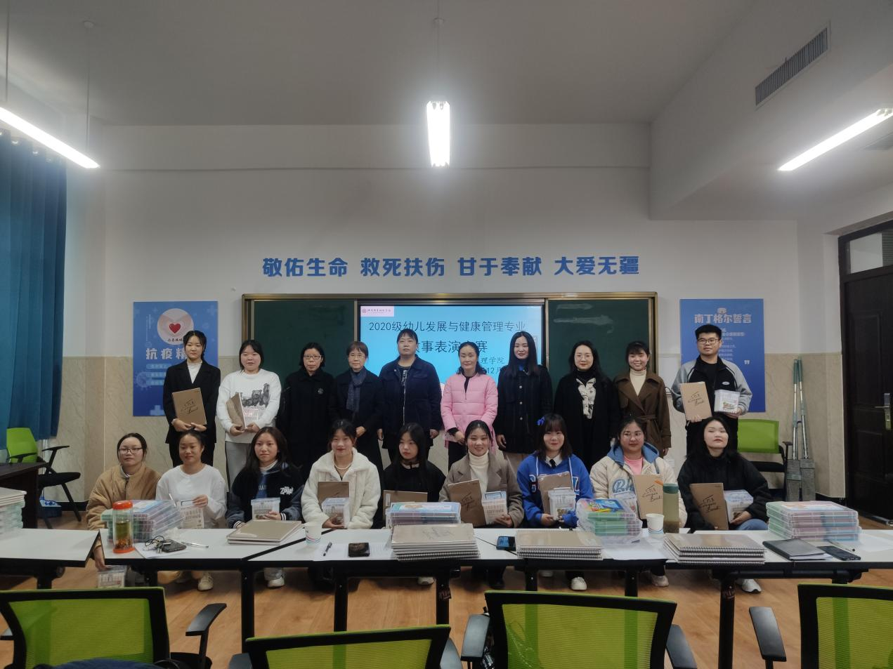 为深化职业教育课堂教学改革,激发学生学习兴趣,提高学生技能水平,增强学生动手操作能力,提升学生在职场的核心竞争力,12月3日,护理学院开展2020级幼儿发展与健康管理专业“故事表演大赛”。此次比赛特邀洛阳贝贝幼儿园园长张晓晓、洛阳贝贝幼儿园人力资源部主任郭明月、育婴师协会会长刘冰及护理学院朱前进、朱莉和景书坛老师作为评委。