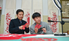 人民网洛阳1月29日电(尚明桢)随着虎年春节临近,在河南省洛阳市剪纸艺术传承研习基地内,首场“云端”虎年剪纸公益研习活动开播。省级非遗项目剪纸技艺代表性传承人王飞与基地学员正在直播间,通过“云端”秀起了传统剪纸技艺。一幅幅萌虎剪纸作品惟妙惟肖,传统文化在寓教于乐中得以传承。