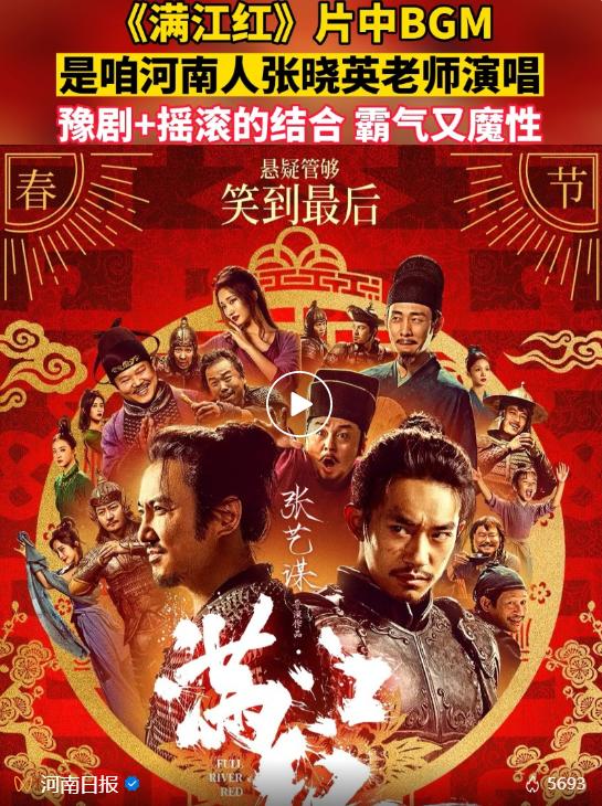 张晓英本人也进行了确认:张艺谋导演电影《满江红》摇滚版豫剧配音,韩红编曲,张晓英演唱!