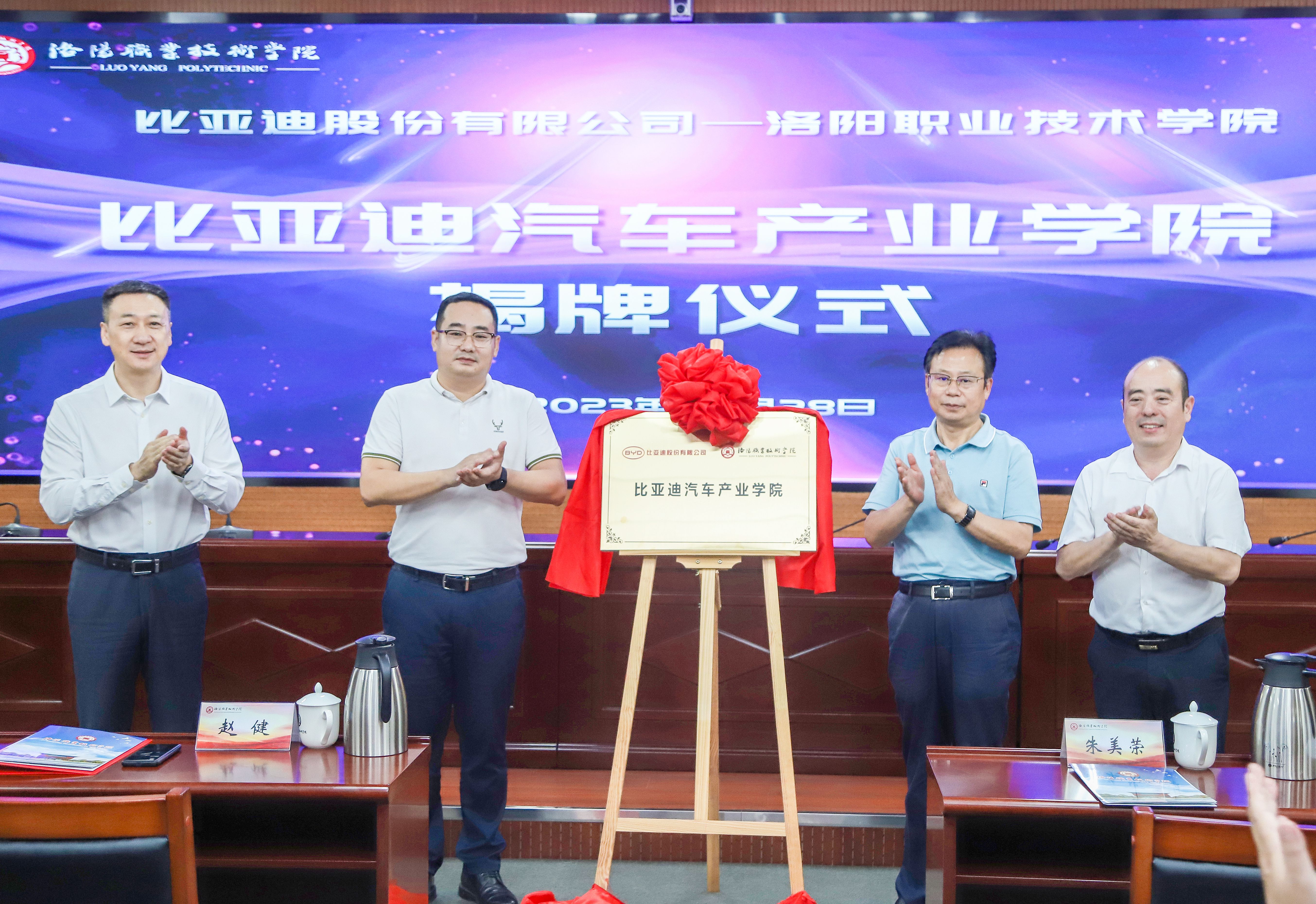 朱美荣、刘俊鹏共同为“比亚迪汽车产业学院”揭牌。