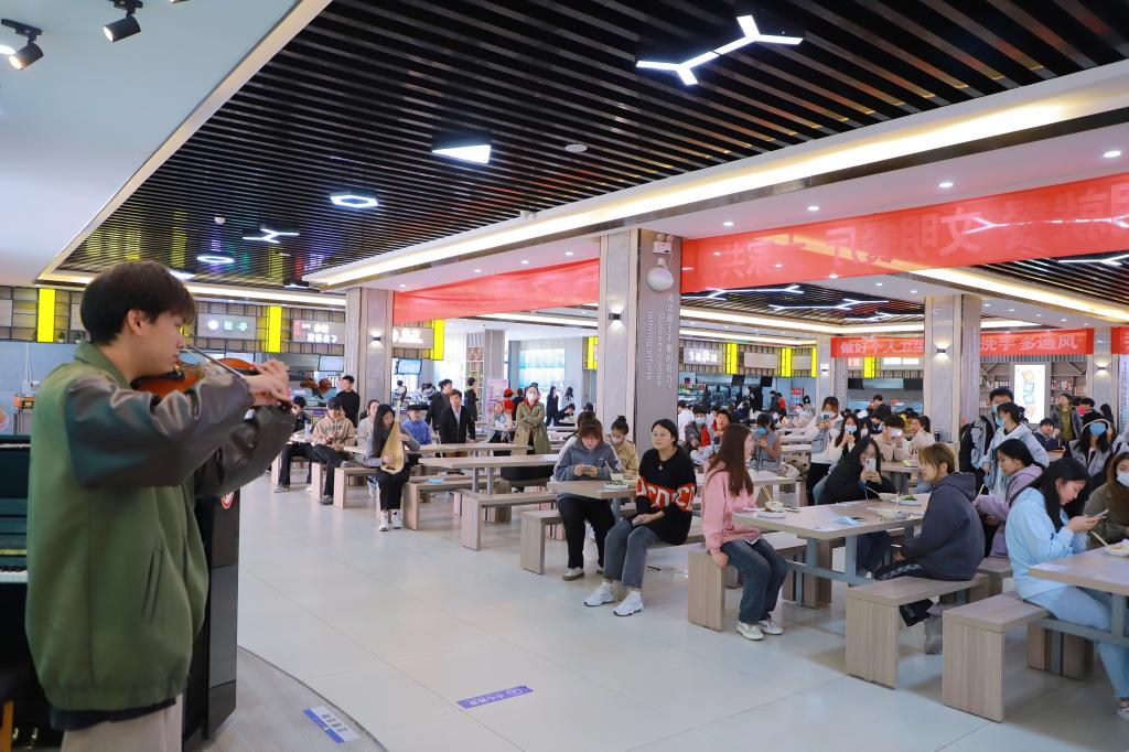 据悉,这是洛阳职业技术学院校园文化氛围营造的一项创新举措。该校戏曲艺术学院的师生们将钢琴、小提琴等乐器搬进餐厅,并组织学生们在就餐时间演奏,既锻炼了学生在公共场合的表演能力,也为广大师生送上一份音乐盛宴,让他们在日常生活中就能感受到艺术的魅力。