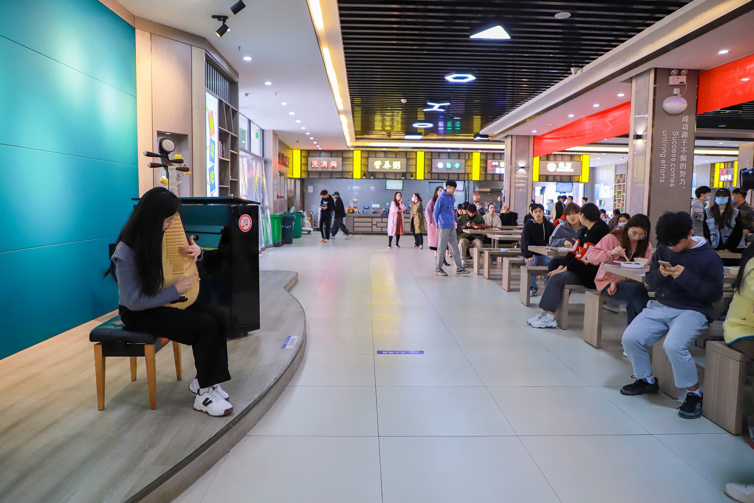 “我弹奏的是《雨的印记》。上小学的时候,我练习过两年的钢琴,虽然现在学习的是护理专业,平时很少有时间再去练习,但是看到餐厅里摆放着的钢琴,还是忍不住去弹奏了一段。”正在餐厅就餐的董永琦说,“能够在餐厅听到悠扬的琴声,特别意外,也特别惊喜。边吃饭边听音乐演奏,感觉饭菜都更香了。”