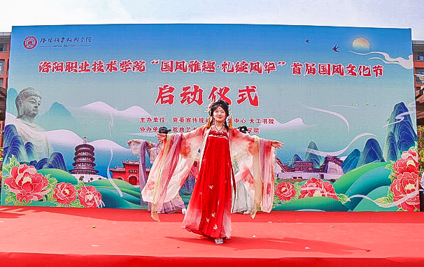 启动仪式上,“编钟水袖”的舞者用轻盈的舞步和优雅的身姿展现了国风舞蹈的韵味;汉服走秀“霓裳华裳”中,学生们身着汉服,款款走来,传递着汉服的风采;洛阳职业技术学院书法家协会的老师现场挥毫泼墨,创作书法作品,展示了中国传统书法的独特魅力。