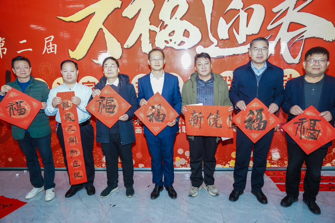赵健对校内书法家公益写对联为广大师生送新春祝福的活动给予赞赏,并在现场亲自提笔书写“福”字,祝福学校快速发展,师生幸福。李保安与现场书法家进行了亲切交流,鼓励他们创作更多优秀的书法作品,营造浓厚的校园文化氛围。