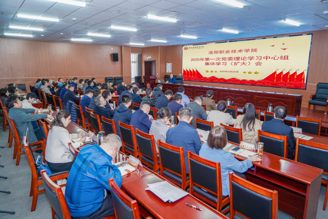 3月20日,洛阳职业技术学院举行2025年第一次党委理论学习中心组集体学习(扩大)会,专题学习全国两会精神。市委党校原副校长冯小六副教授应邀作专题授课,党委书记赵健出席会议,副校长韦元民主持会议。