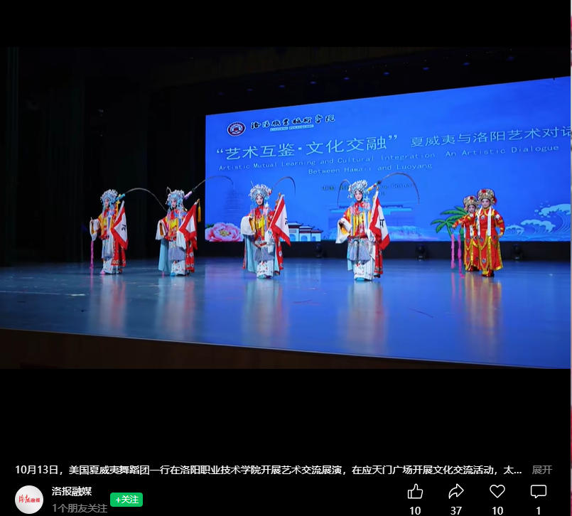 洛阳融媒:10月13日,美国夏威夷舞蹈团一行在洛阳职业技术学院开展艺术交流展演