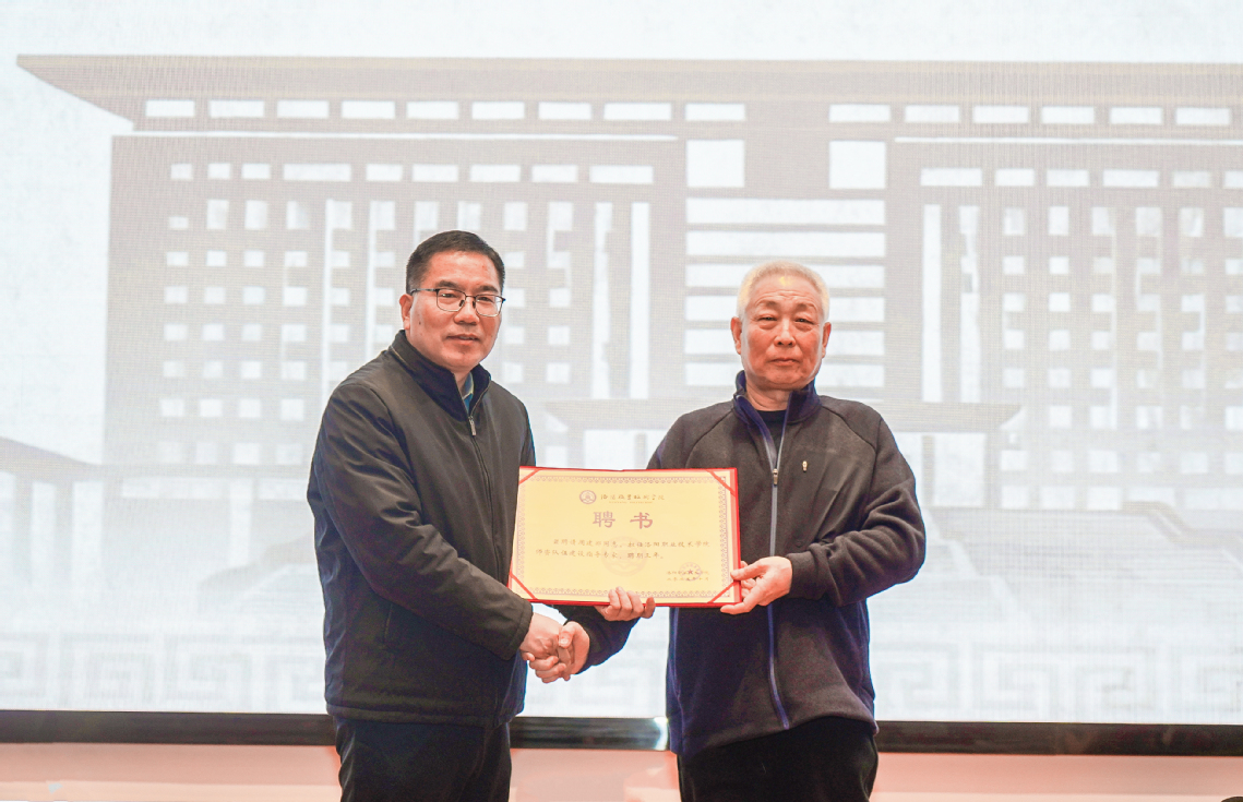 副校长张志友为周建郑颁发“学校师资队伍建设指导专家”聘书。