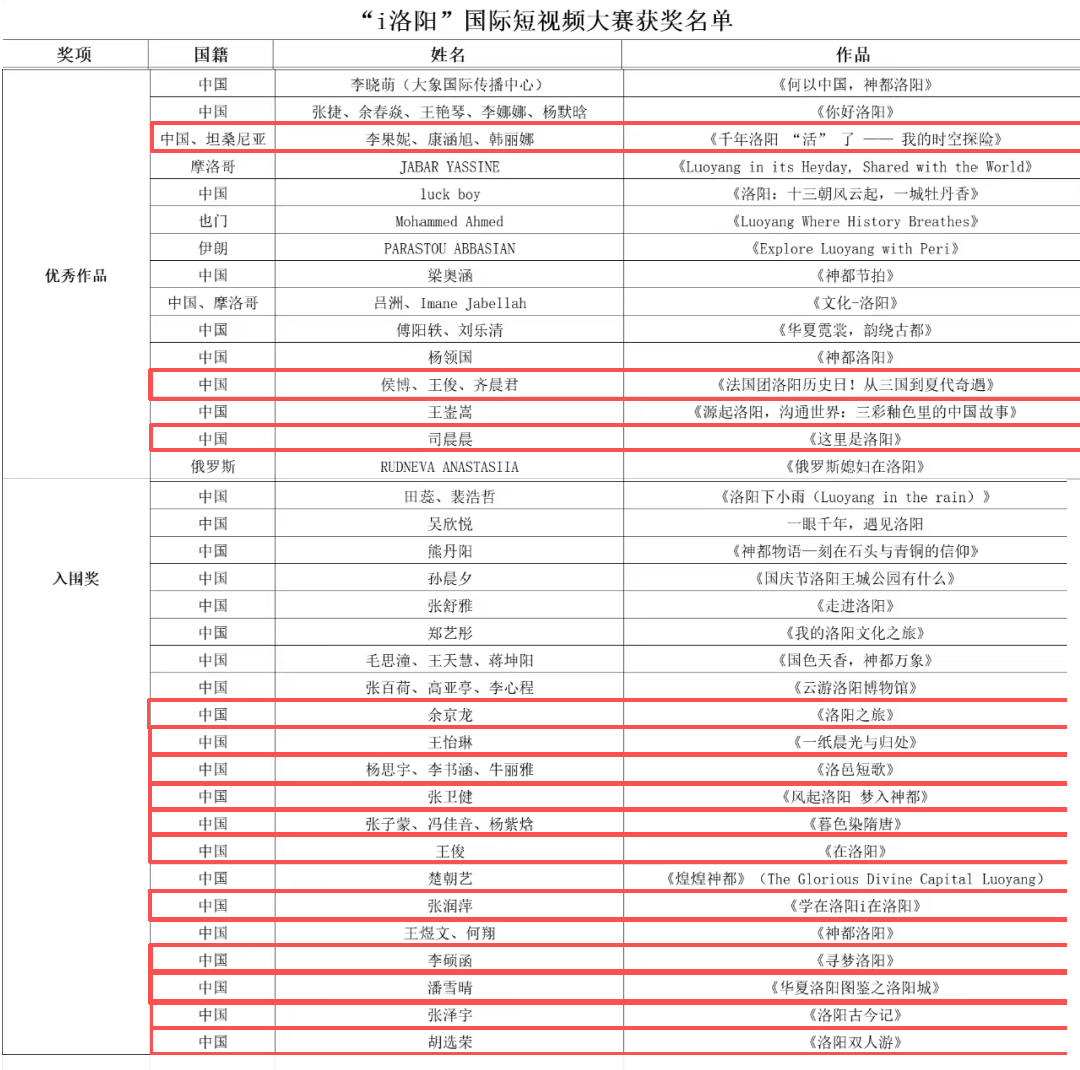 近日,“盛世洛阳全球共赏——‘i洛阳’国际短视频大赛”获奖名单揭晓。我校师生参赛作品收获优秀作品奖3项、入围奖11项。