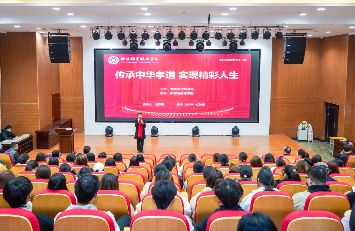 11月6日,洛职大讲堂第27期在大学生活动中心心理剧场举行,河南省儒学文化促进会讲师团副团长、高级政工师刘翠娥应邀开讲。副校长张志友出席。