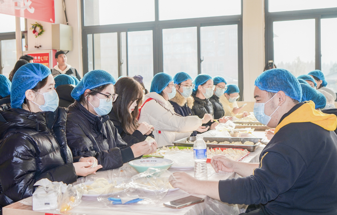 活动现场还举行了包饺子趣味比赛,5人一组,在限定时间内计算数量与质量。大家争分夺秒,既要比拼包饺子的数量,更要兼顾饺子的品相。评委则依据数量与外观进行评判,最终选出优胜队伍。