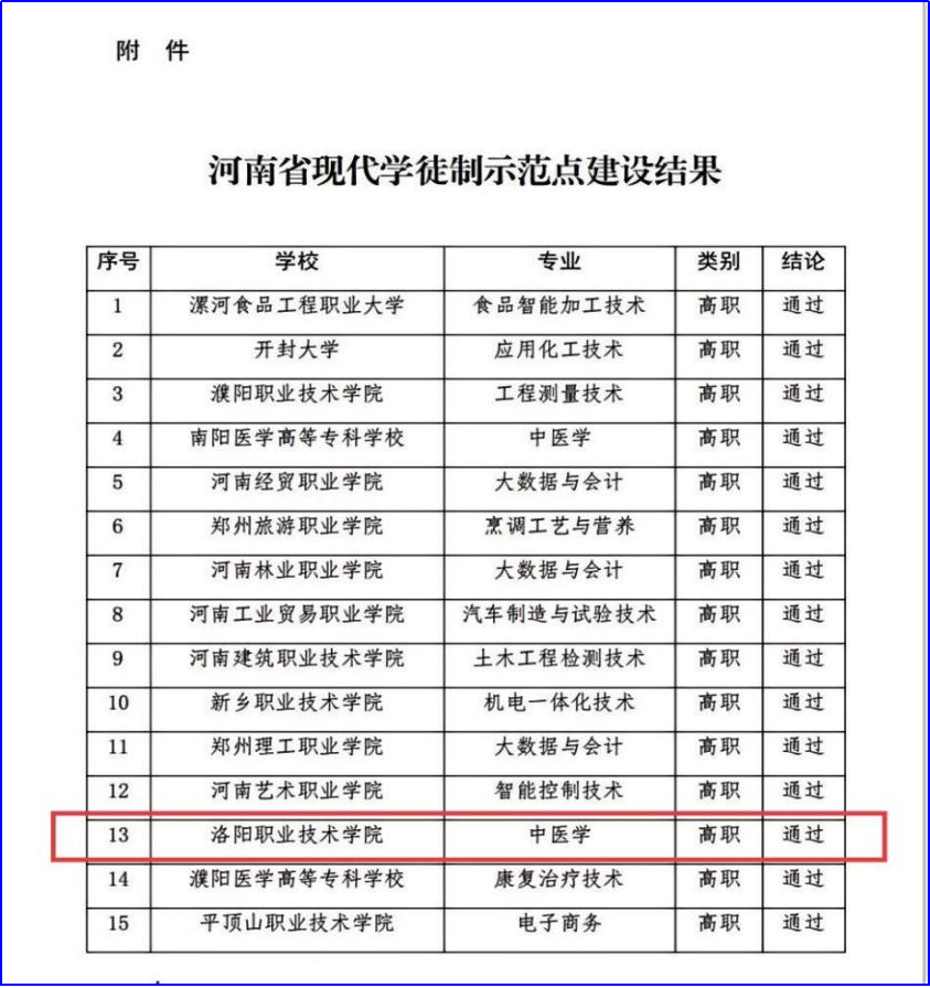 近日,河南省教育厅公布现代学徒制示范点建设验收结果,我校中医学专业河南省现代学徒制示范点以扎实的建设基础、创新的育人机制和显著的实践成效,顺利通过省级验收。