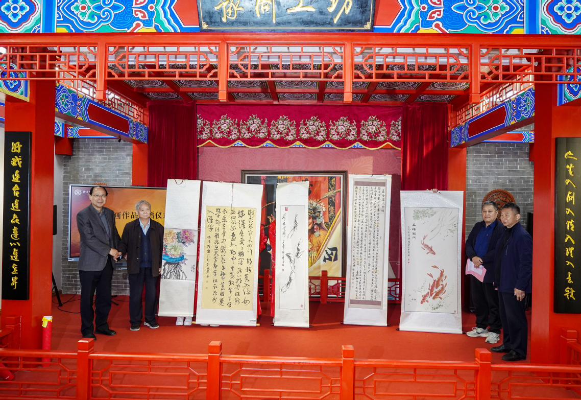 现场,郑州老年书画研究会代表向马金凤戏曲艺术博物馆捐赠书画作品。