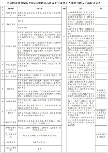 洛阳职业技术学院关于2025年招才引智面试资格确认相关事宜的公告