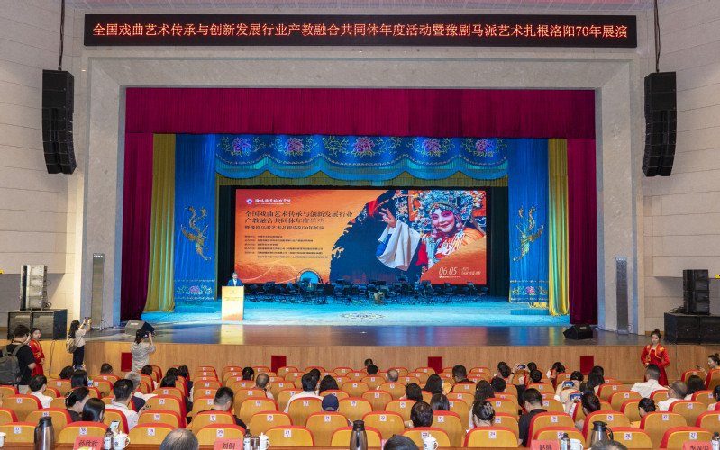 6月5日,全国戏曲艺术传承与创新发展行业产教融合共同体2025年度工作会议在马金凤大剧场举行。中国艺术职业教育学会秘书长赵大志,一级编剧、中国艺术职业教育学会专家委员会副主任刘侗,洛阳市委宣传部副部长孙欣欣,洛阳市文化广电和旅游局副局长潘文武,洛阳职业技术学院党委书记赵健、校长李保安、党委副书记任晓平、副校长张卫国出席会议。赵健在致辞中表示,全国戏曲艺术传承与创新发展行业产教融合共同体自去年成立以来,各成员单位秉持高度的责任感和使命感,积极作为、通力协作,通过召开全国戏曲艺术传承创新研讨会、优化课程体系与教学模式、促进人才双向流动、举办戏曲艺术文创设计展等,在人才培养、校企合作、社会服务、文化传承创新等多个领域取得了显著的成绩,有力推动了传统戏曲艺术与现代数字技术的有机融合,实现了戏曲教育供给与行业人才需求的精准对接,为新时代戏曲艺术的创新性发展注入了动能、增添了活力。希望各成员单位充分发挥自身优势与特色,集众智、聚合力,持续为戏曲艺术传承与创新谋思路、解难题,为探索戏曲艺术育人新路径、扩大戏曲艺术影响力、培养更多高素质技术技能人才作出新的更大贡献。赵大志在讲话中表示,当前,戏曲艺术传