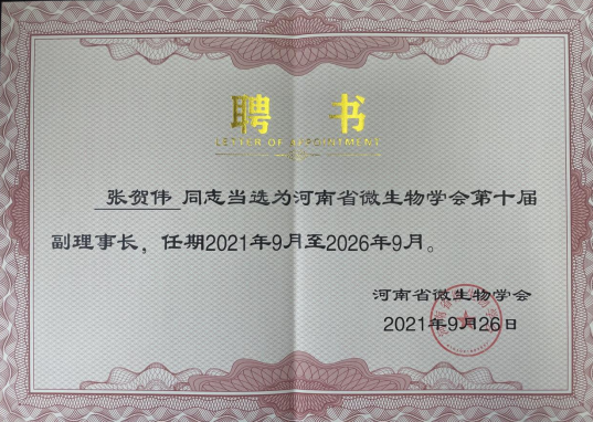我校张贺伟博士当选河南省微生物学会第十届副理事长
