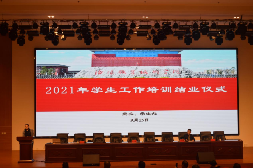 9月25日下午,学院2021年学生工作培训结业仪式在大学生活动中心一楼报告厅举行,副院长张志友出席结