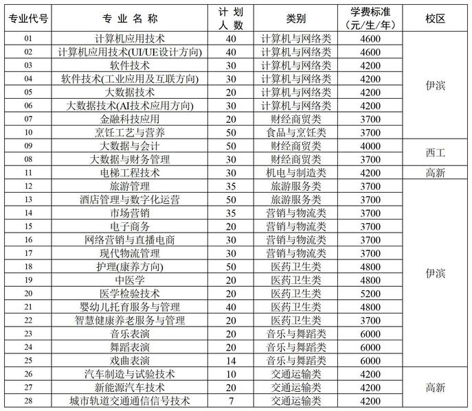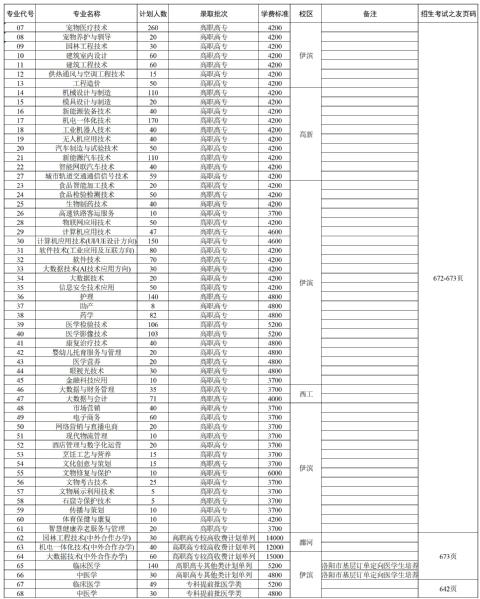 一、报考对象已通过河南省2024年普通高校招生统一考试(简称“普通高考”)报名的考生。二、志愿填报批次高职高专批次其他类计划单列。三、志愿填报时间 7月4日8:00 — 6日18:00。四、志愿填报平台 “河南省普通高校招生考生服务平台”(https://pzwb.haeea.cn)。五、我校专科代码6384六、专业代号七、注意事项 1.基层订单定向医学生培养招生为高职高专批计划单列,不影响其他批次志愿的报考。2.报考需签订承诺书提交报名所在地招办上传。(报志愿页面会有提示,考生将承诺书下载打印并按要求签字提交。)3.考生必须在规定时间内完成志愿填报并保存,在规定的截止期前可以进行不超过两次的修改,以网上最后一次保存的志愿为准,填报时间截止后将无法更改。考生网上填报志愿保存后,即视为与高校之间的志愿约定生效,录取时不得擅自放弃;考生的志愿信息任何人不得改动,否则,将依法依纪严肃追究有关人员的责任。县(市、区)招生考试机构依据考生网上保存的志愿信息打印出志愿表并加盖公章后存入考生档案。八、签订协议 拟被录取的基层订单定向医学生,入校前必须和协议地县区政府(卫生健康委)、洛阳职业技术学院签