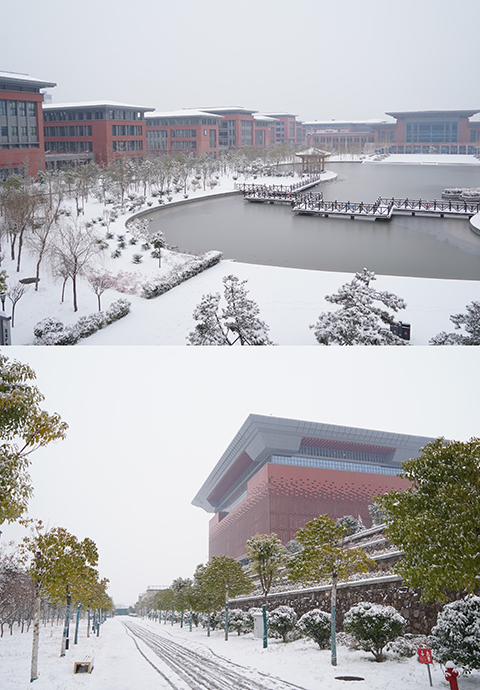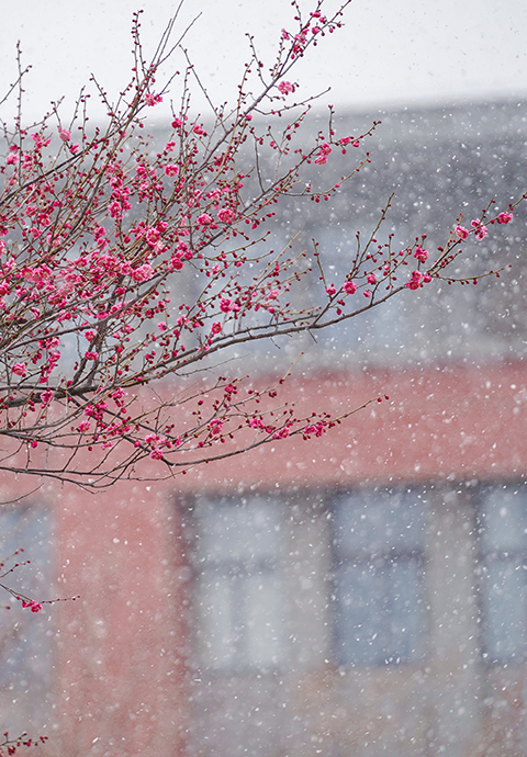 恐有街头胭脂色,柳絮沾白雪沾红。洛职华光现,红昭剪影炫,愿此青春景,长留岁月甜。