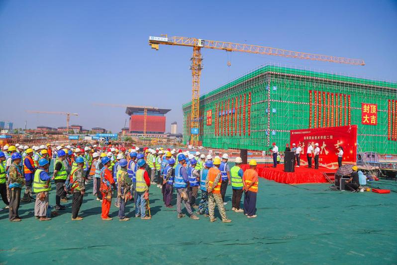 8月31日,我校举行新校区建设二期项目首批楼栋封顶仪式,校长赵健、副校长刘航出席活动,中建五局豫西分