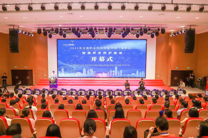 7月20日,2023年全国职业院校技能大赛高职组健康养老照护赛项在我校开幕。 教育部职业教