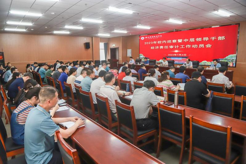 7月4日,我现在图文信息中心930会议室召开2023年校内巡察暨中层领导干部经济责任审计工作动员会。
