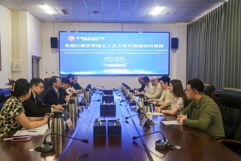 5月26日上午,白俄罗斯国立工艺大学代表团访问我校,并在图书馆801会议室举行座谈会。 白俄罗斯国立