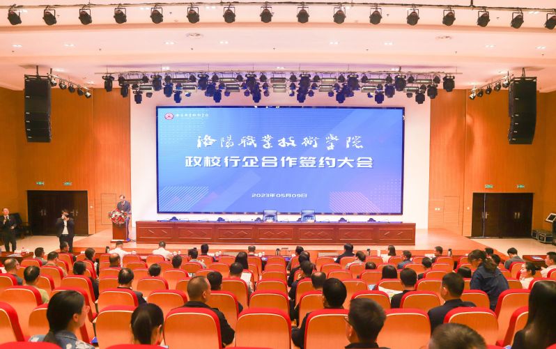 5月9日,我校政校行企合作签约大会在大学生活动中心举行,我校分别与河南广播电视台、洛阳国晟投资控股集