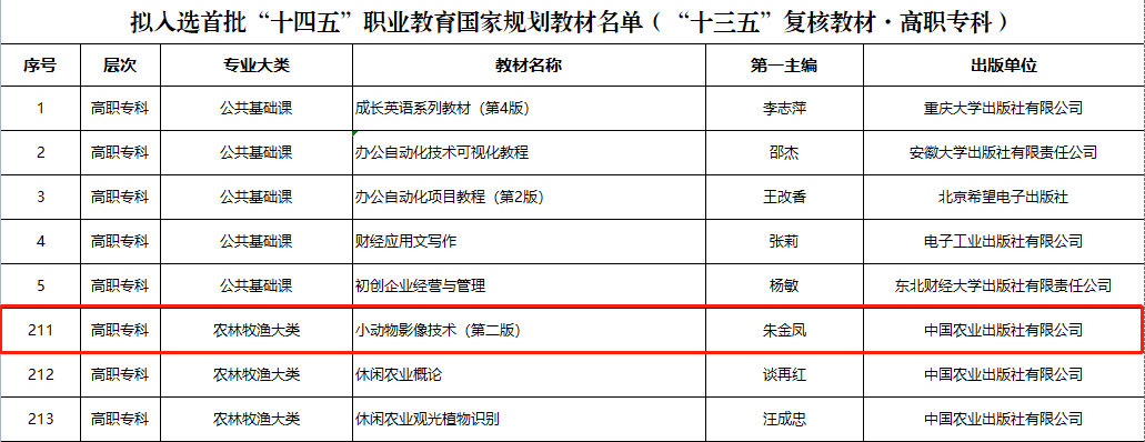 近日,教育部职业教育与成人教育司发布《关于拟入选首批“十四五”职业教育国家规划教材名单的公示》,农业