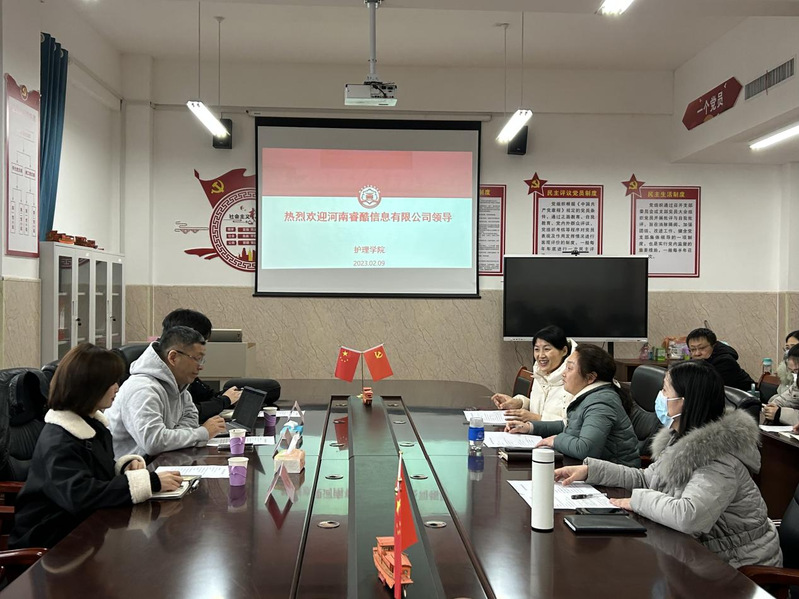 2月9日下午,护理与康养学院在临床技能实训楼3楼会议室举行校企合作洽谈会。河南睿酷信息有限公司CEO