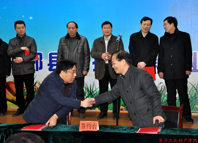 院长程相朝与郏县人民政府副县长李国英签订实施职业教育战略合作框架协议。