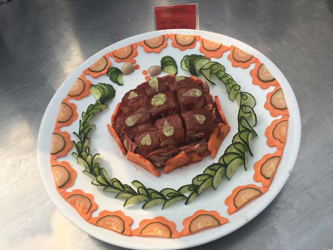 本次比赛设“热菜创意”和“面点比拼”两个项目。“热菜创意”环节主要由14级选手参赛,各选手须在规定时间内烹饪出色香味俱全的特色创意菜。“面点比拼”分为拉面、刀削面、花色面点三个系列,选手们须自选一项,制作出精美面点。两个项目最终按味感、质感、观感、营养卫生等综合评分。比赛过程中,参赛选手在菜品设计、原料选配、加工制作工艺等方面都做了精心构思,菜品制作的过程严格按照规范的操作流程进行。参赛选手们用精湛的技艺,通过传承与创新的有机结合传播了饮食文化,展示了一名准大国工匠的风采。参赛选手忙的不亦乐乎,观众看的兴致勃勃,现场出现阵阵掌声。评委们通过观察、品尝、询问、比较,对参赛作品进行了客观公正的评价。