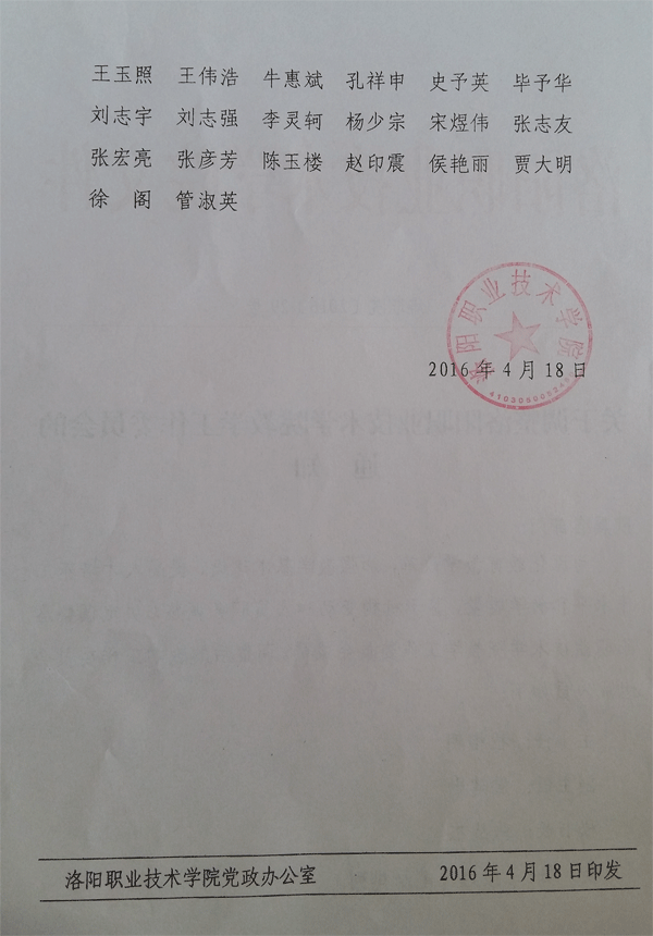 关于调整洛阳职业技术学院教学工作委员会的通知