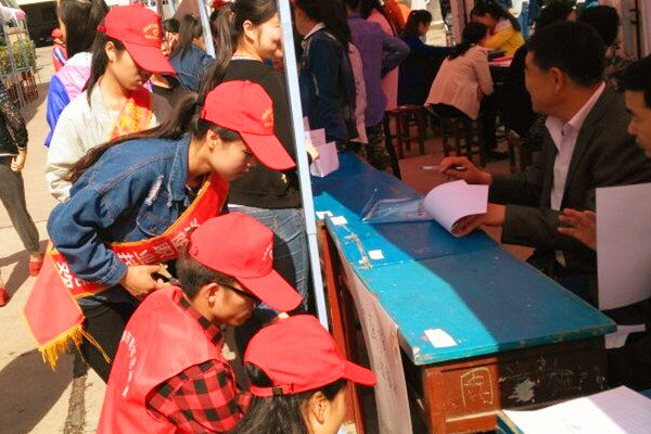 为展现我院l良好的校风、学风,院团委提前对志愿者进行分组、培训并指定专门老师带队。学生早上6点半赶到活动现场开始为用人单位搭建伞棚、装订宣传公告、布置桌凳、面试引导、门外迎宾等,每项服务工作热心周到,会场气氛十分融洽,受到招聘单位好评。
