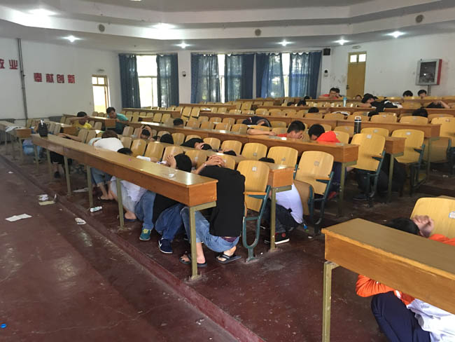 东方文化创产学院烹饪专业全体学生进行教室内地震逃生演练