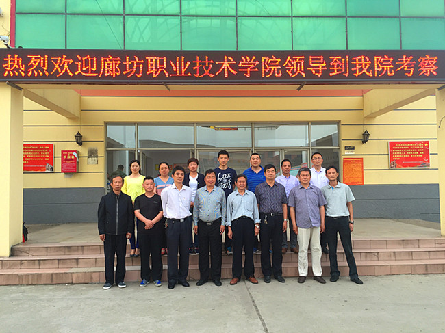 2016年5月23日下午16时廊坊职业技术学院学生处处长王泽泉等一行8人到我院参观学习,学生处处长王少六、学生处副处长,团委副书记、药检系、东方文化创产学院副书记8人参会并进行交流。