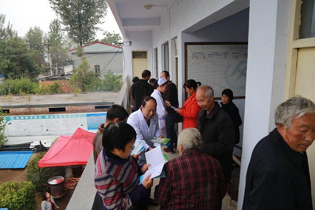 冒着绵绵秋雨,上午10点一到目的地,等候看病的该村和附近的群众就把专家们围得水泄不通。专家们顾不上喘一口气、喝一口水立即投入到紧张的工作中。医务人员细心地为前来求医问诊的村民体检、量血压、测血糖等,为病人切脉、听诊、耐心询问患者身体状况、分析病情,并讲解注意事项,解答常见病、多发病的预防诊治及愈后疑难问题。参加义诊的医务工作人员还为在场的村民们详细讲解医疗卫生、健康保健基本知识。专家组深入到患有脑血栓行动不便的困难户孙古栾家中送医送药。孙古栾激动地说:驻村工作队和大夫来家里给我看病送药,太感谢了,就是家里人也没有这样关心我!