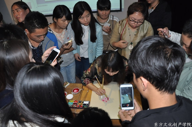 2016年10月20日下午,东方文化创产学院邀请中原王铎书画院副院长、洛阳女子书画院副院长兼秘书长吴惠敏来我院做中国画讲座。东方文化创产学院全体教师、学生,齐聚高新校区北院学术报告厅聆听。科研外事处给予了大力支持。