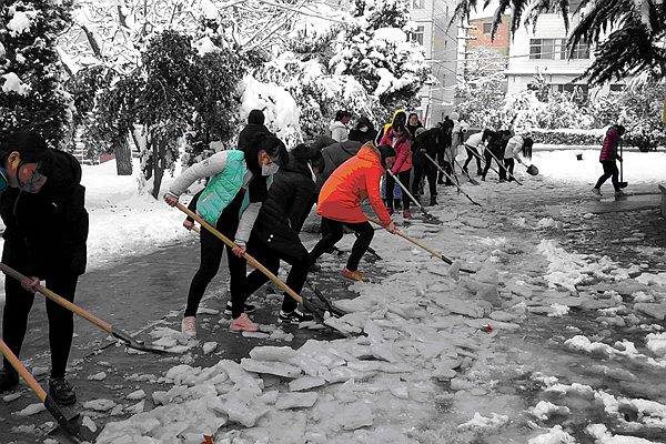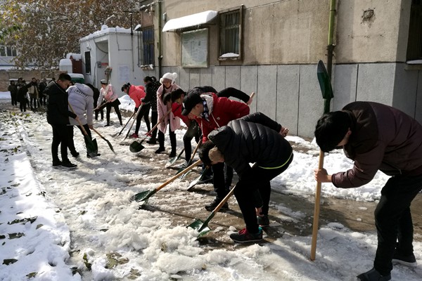 此次清理积雪活动,在护理学院领导和老师的带领下,同学们用自己的辛勤劳动,给广大师生营造了一个干净整洁、安全优美的校园环境,师生清积雪,温情似暖阳。