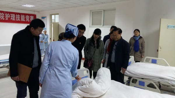1月8日,由洛阳理工学院郑林林处长、洛阳市第二中医院刘剑钢主任、洛阳理工学院赵永涛主任一行3人组成的教育局评估专家组莅临我院,对我院申报的洛阳市护理示范性特色专业项目进行了评估和验收。学院副院长孙建勋、教务处处长董均、护理学院院长张志友等同志参加了评估汇报并陪同考察。