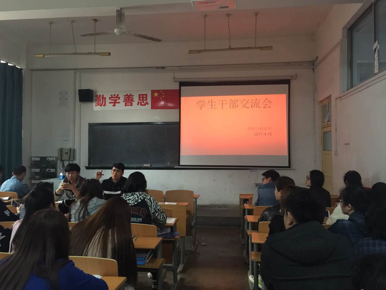 为进一步提高学生干部综合素质及工作能力,药学与检验系于4月12日下午在机场校区南院102教室举行学生干部交流会,特邀我系2013级学生干部、优秀毕业生胡月园和王丹同学回到母校与学生会干部、团干部以及各班班长做经验交流,共70余人参加。