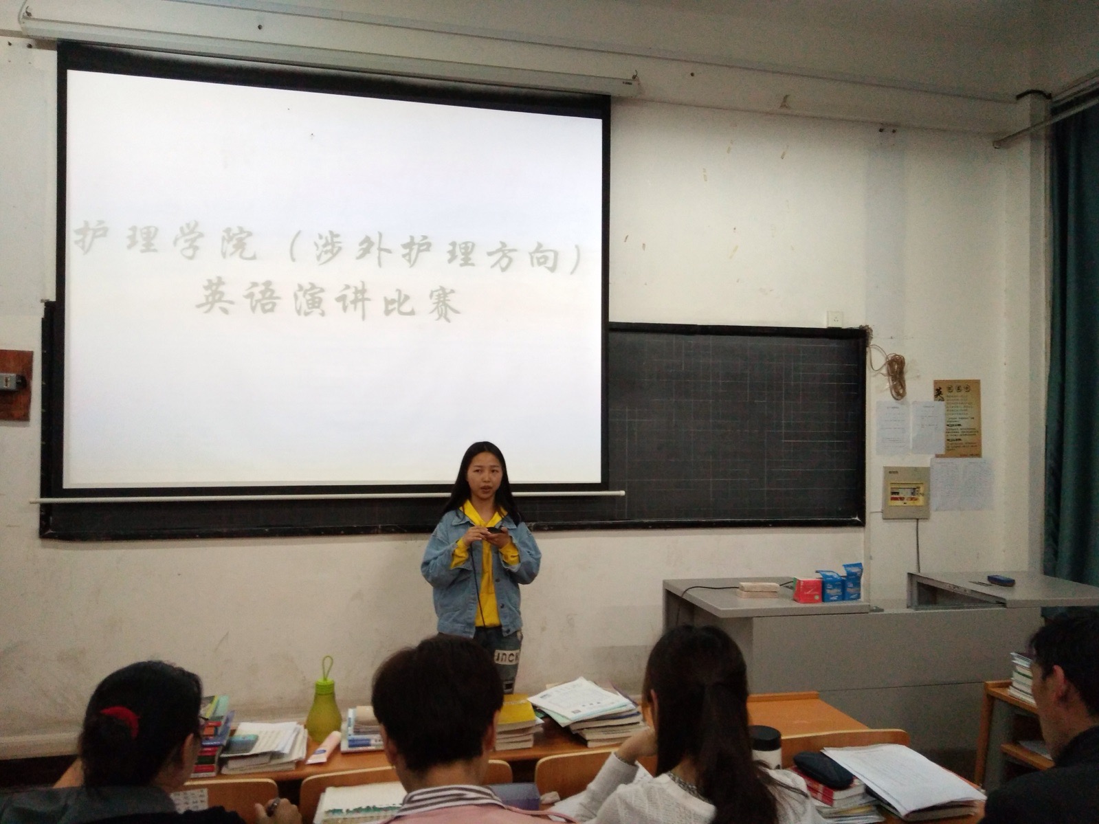 护理学院为了提高全院学生对学习英语的热情,培养青年大学生的英语综合应用能力,营造健康、积极、向上的学习态度.于4月17日在机场校区南院教学楼207教室举办英语演讲比赛。担任此次评委的有:王玉照老师、赵洁老师、李锡岚老师、炊润媛老师。 | |
