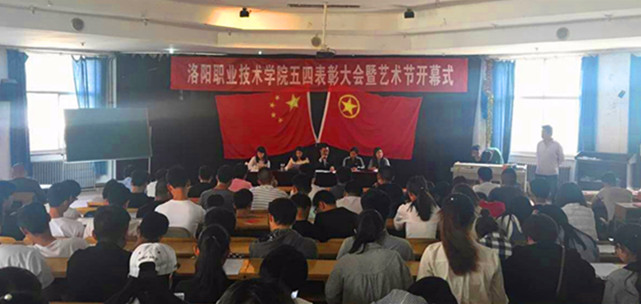 为纪念“五四”运动98周年,庆祝建团95周年,在院团委的组织下,于2017年5月4日14时在高新校区北院阶梯教室隆重举行洛阳职业技术学院2016-2017学年五四表彰大会暨文化艺术节开幕式,院团委、各院系团的负责人及优秀团员代表300余人参加。
