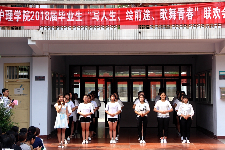 联欢会在2015级大专护理六班带的啦啦操中火爆开场,带动了场下观众的热情。接踵而至的歌曲、舞蹈、古筝独奏、诗朗诵等节目彰显艺术色彩。回望尽头留下青葱岁月,展望前方不尽似水流年,诗朗诵《洛职颂》勾起了大家对大学生活的无尽回忆,让毕业生们深情地倾诉着对母校和学院的眷恋不舍之情。