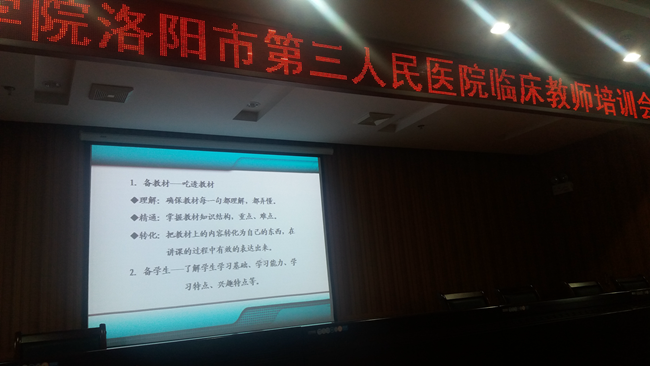 为提高临床医学专业课教师教学水平,保证临床专业教学质量,8月21日下午,我院临床教师培训会在附属医院举行。会议由附院副院长苗润宏主持,学院副院长孙建勋和附院党委书记姚克敏出席并讲话。