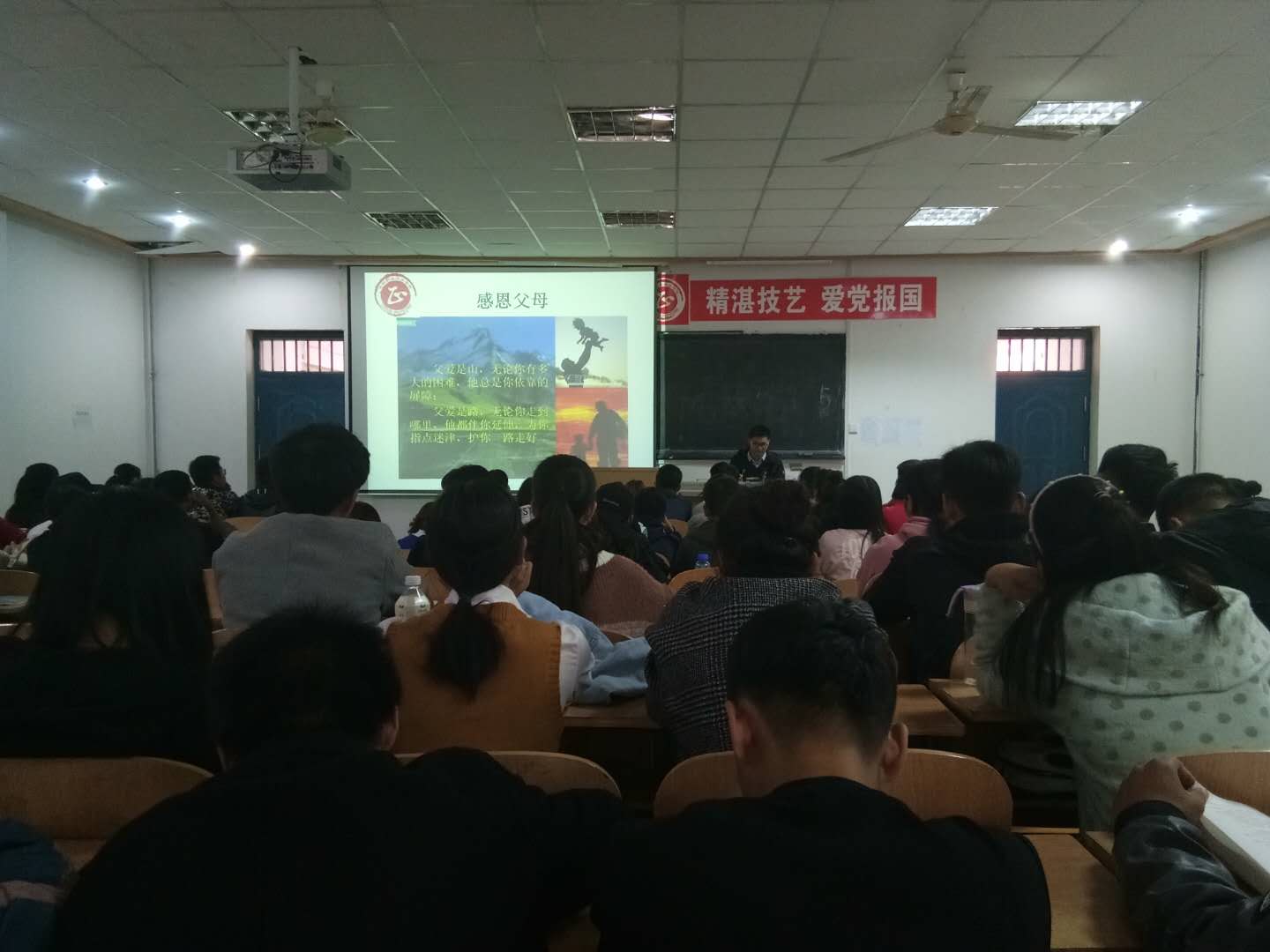 感恩是一种生存智慧,是做人的道德底线,感受和感激他人恩惠的能力的成长,是一个人维护自己的内心安宁感和提高幸福充裕感必不可少的心理能力。在院团委(学生处)的指导下,我系于2017年9月28日在机场校区北院第一多媒体开展了以“道德讲堂·社会公德之感恩篇”为主题的讲座。