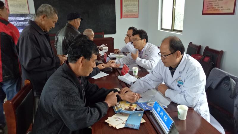一是开展扶贫义诊活动,提高贫困村百姓防病治病意识和医疗健康水平。10月14日上午,在院党委书记李大伟,副书记、常务副院长孙敏和副院长朱豫豪的带领下,我院医学系、药检系、护理学院和附属医院(洛阳市第三人民医院、洛阳市第二中医院)专门选派的老师专家和扶贫结对单位负责人共六十余人,带着心电图机、血糖仪、血压计、眼科检查仪器等检查器具和3500多元的药品、宣传册,深入精准扶贫帮扶村——栾川县栾川乡湾滩村开展扶贫义诊活动。